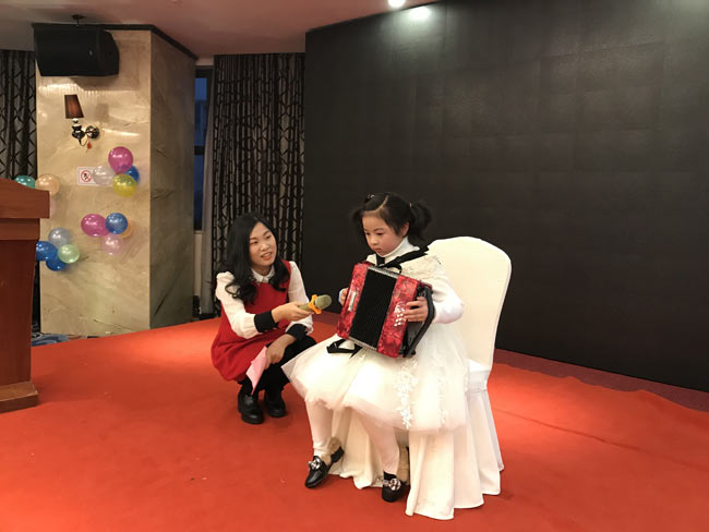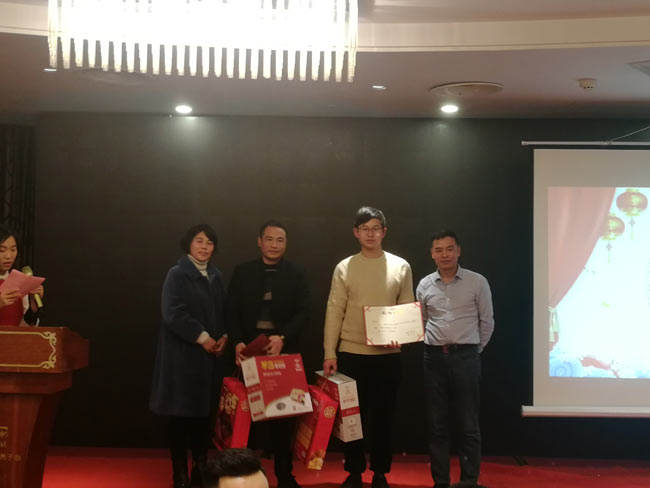 东阁集团董事长和夫人为优秀经营户颁奖。