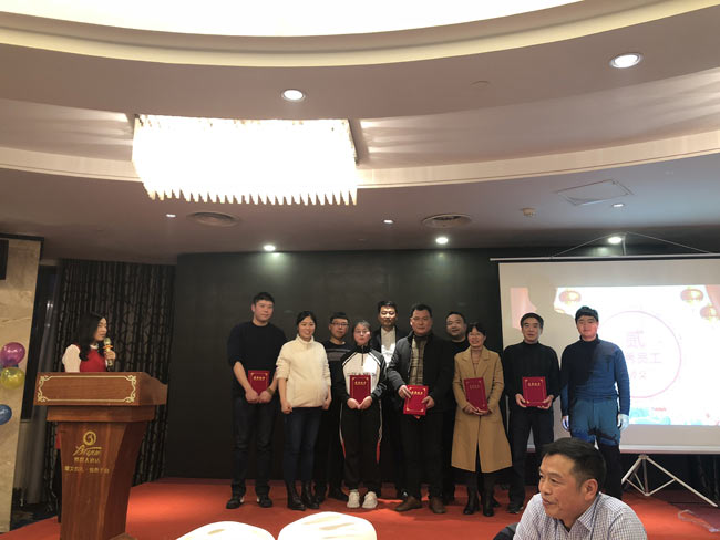 东阁集团总经理、副总、子公司经理为优秀员工颁奖。